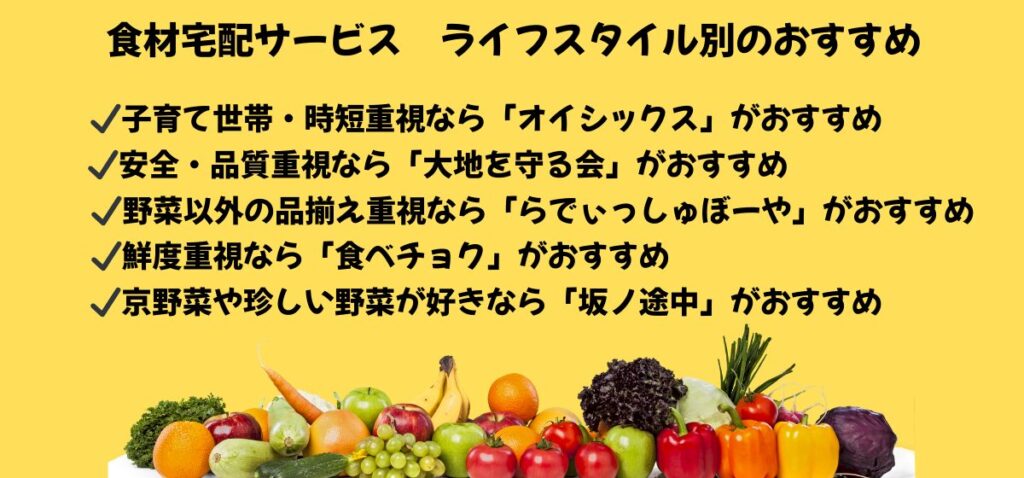 【まとめ】レビュー比較結果|食材宅配サービスはライフスタイルに合わせて選ぼう